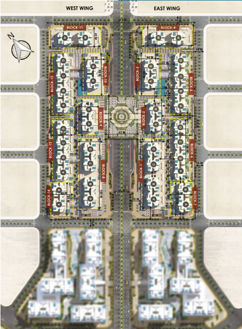 يضم وسط المدينة، الذي تم تصميمه ليكون مركزًا متكاملاً، وحدات سكنية وتجارية. يوفر 28 نوعًا مختلفًا من الوحدات تتراوح من غرفة نوم واحدة