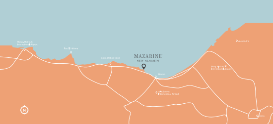 تقع على طول الطريق الرئيسي محور الإسكندرية – مرسى مطروح الطريق، 25 دقيقة سيرا على الأقدام،
